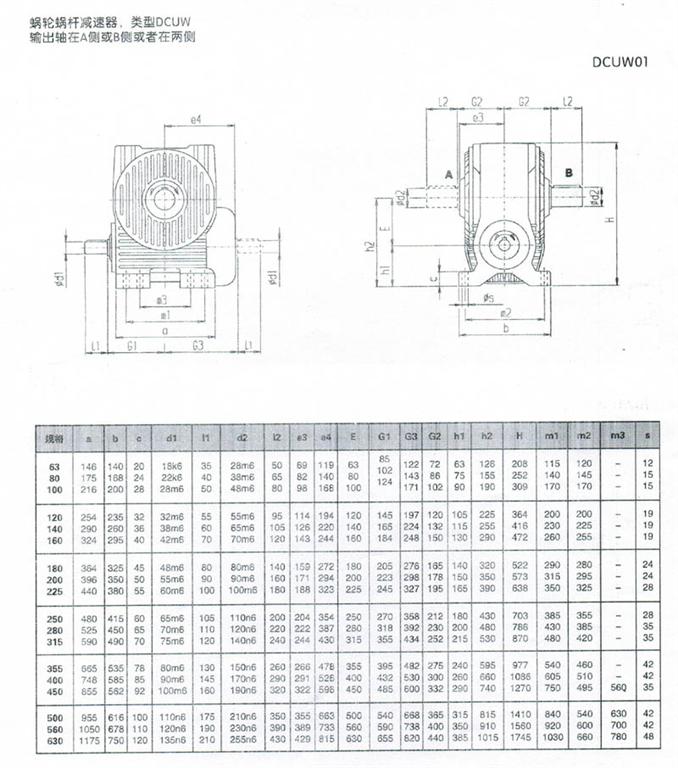 CUW蝸輪蝸桿減速機(jī)安裝尺寸如下: