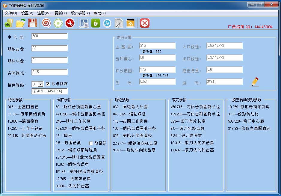 按常規(guī)方式計(jì)算二次包絡(luò)蝸桿副的各項(xiàng)參數(shù)相當(dāng)復(fù)雜,而且計(jì)算各項(xiàng)參數(shù)時(shí)很容易計(jì)算或者填寫錯(cuò)誤,一旦出錯(cuò)加工時(shí)所造成的原材料及工時(shí)的損失巨大。本軟件計(jì)算式只需要中心距和速比,只要這兩個(gè)參數(shù)不出錯(cuò) 其它計(jì)算都時(shí)以電腦計(jì)算完成,出錯(cuò)率幾乎為零。而且計(jì)算出來的數(shù)據(jù)都以保留3位小數(shù)為準(zhǔn)。
